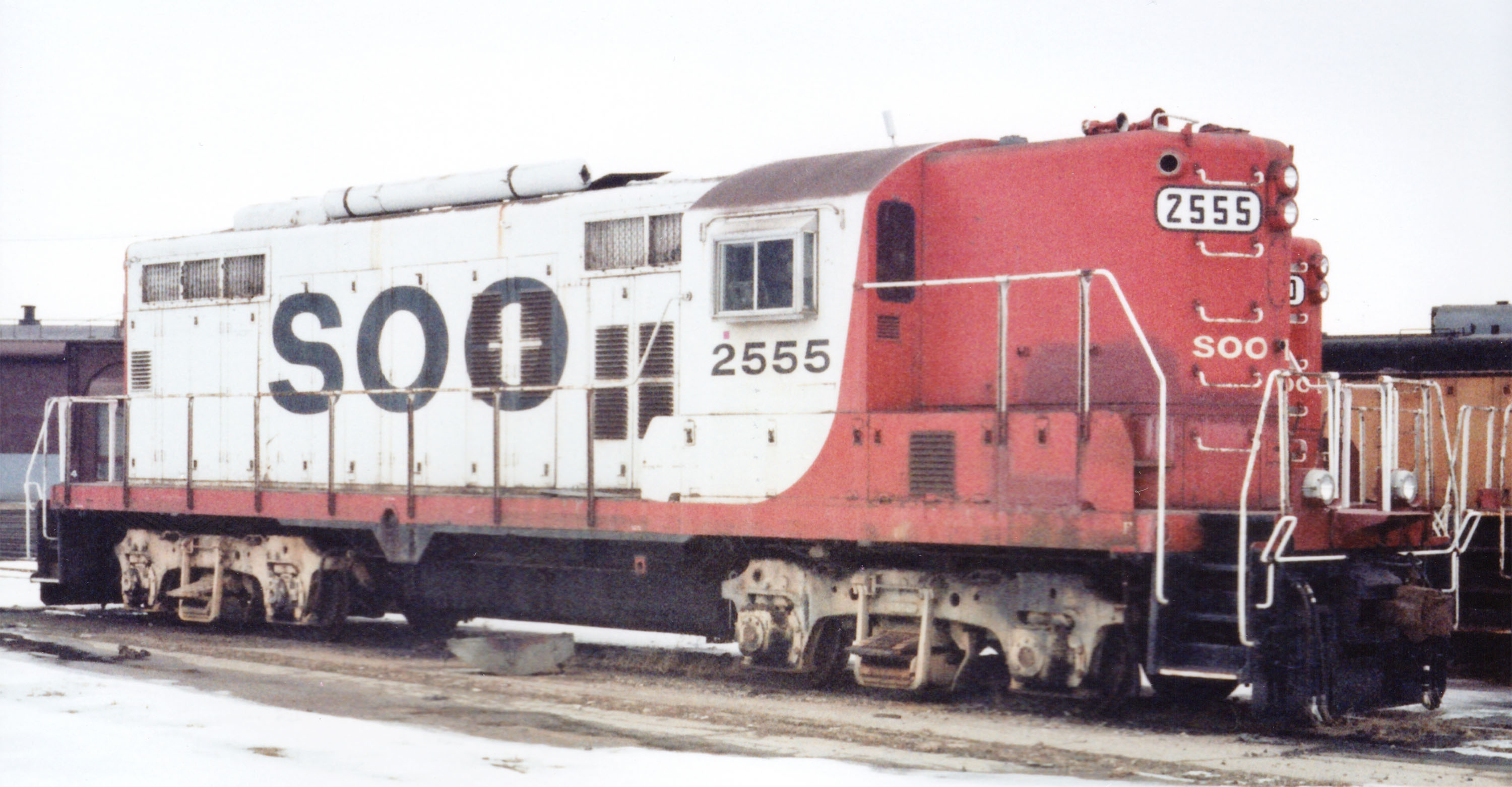 Soo Line GP9 2555 1750HPTAKEN AT- Shoreham Roundhouse -ON- FEB 1994. became CP 8275 . . Last Updated on 2017-02-09 11:33:38